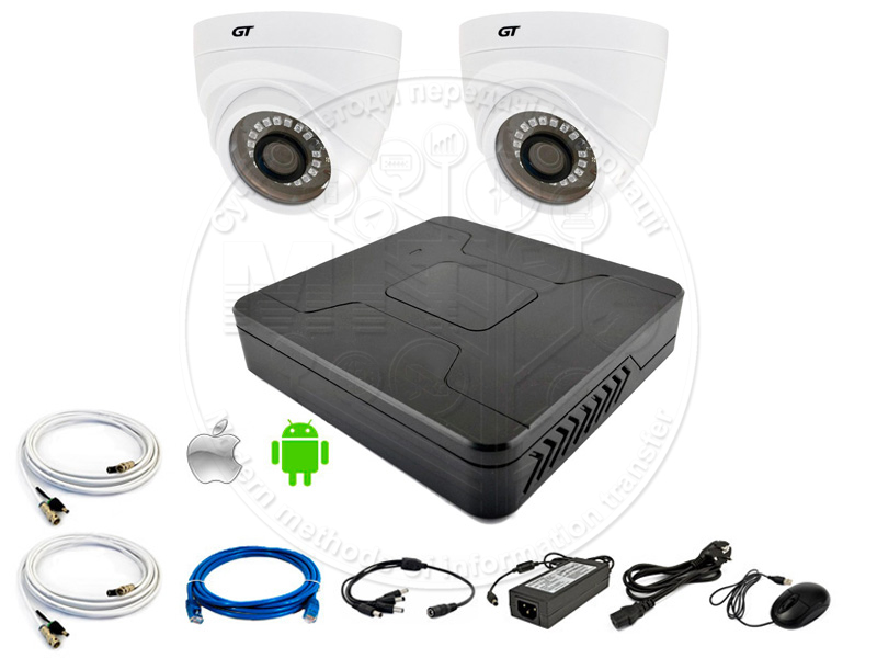 Комплект дротової системи відеоспостереження GT DVR4 IND-2 дозволяє організувати HD відеоспостереження всередині приміщення: у квартирах, офісах і приватних будинках, торгових точках.
