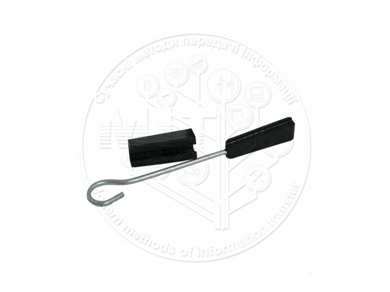Корпус зажиму виготовлений з міцного пластику стійкого до впливу УФ випромінювання і перепадів температур. Кріпильний гак затиску виготовлений із сталевого оцинкованого дроту Ø4 мм.