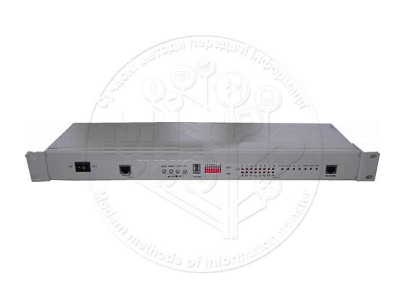 Перетворювачі PDH 16E1-SM20-1310 і 16E1-SM20-1550 для передачі 16 потоків E1 за допомогою одного одномодового оптичного волокна на відстані до 20 км (можливі різні варіанти роботи на 10, 20, 40 і 60 км). Медіа-перетворювачі працюють за схемою точка-точка. Прийом та передача виконуються з різною довжиною хвиль. Медіа-перетворювачі працюють за схемою точка-точка. Вони виконані в 19 “корпусі і мають подвійну систему живлення -48 В і 220 В. Існує світлова система індикації надзвичайних ситуацій та різних режимів роботи, що забезпечує швидку діагностику.
