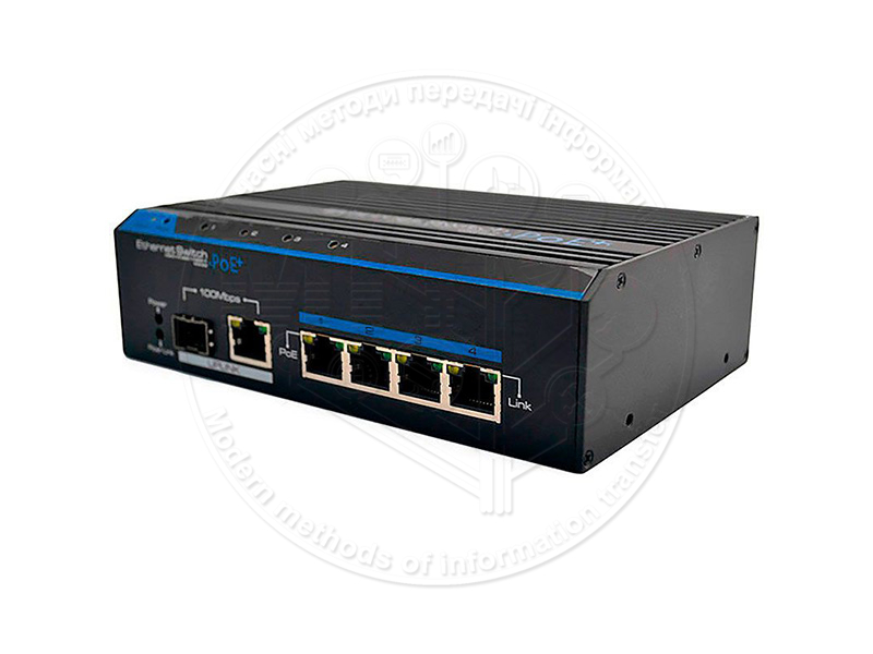 Завдяки якісним характеристикам, свитч успішно подає електроживлення і управляє при швидкості 10/100 Мбіт / с 4-мя мережевими пристроями, які дотримуються стандартів харчування по РоЕ IEEE802.3af або IEEE802.3at. Споживана потужність становить <60W і відстань комутації досягає 150 метрів. Один Uplink порт дозволяє зі швидкістю 10/100 Мбіт / с з’єднувати мережеве обладнання каскадом. Через SFP порт зі швидкістю 1×10 / 100 Мбіт / с відбувається трансляція даних по оптоволокну на значну відстань.